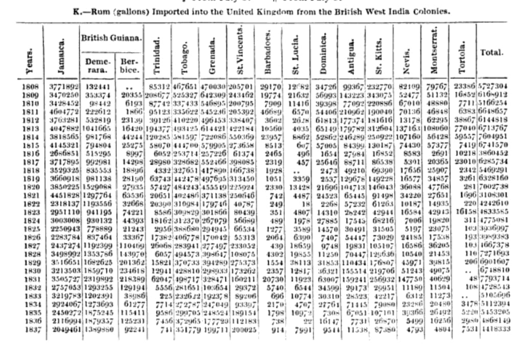 We can see how significant the proportion of rum from British Guiana had become by this time, and how much the quantities from Jamaica had fallen in contrast.