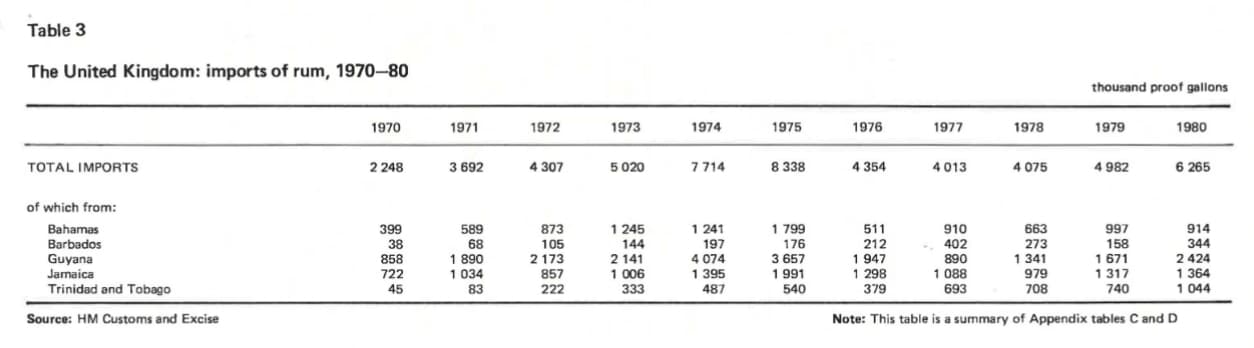 Statistics from the 1970s [12] show the volumes of rum imported into the United Kingdom: